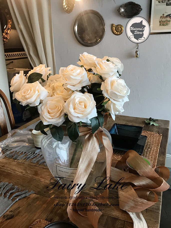 Nordic Wind Beige Rose Emulation Floras bouquet minimalist Wedding wedding wedding wedding with flower table ins wind-Taobao