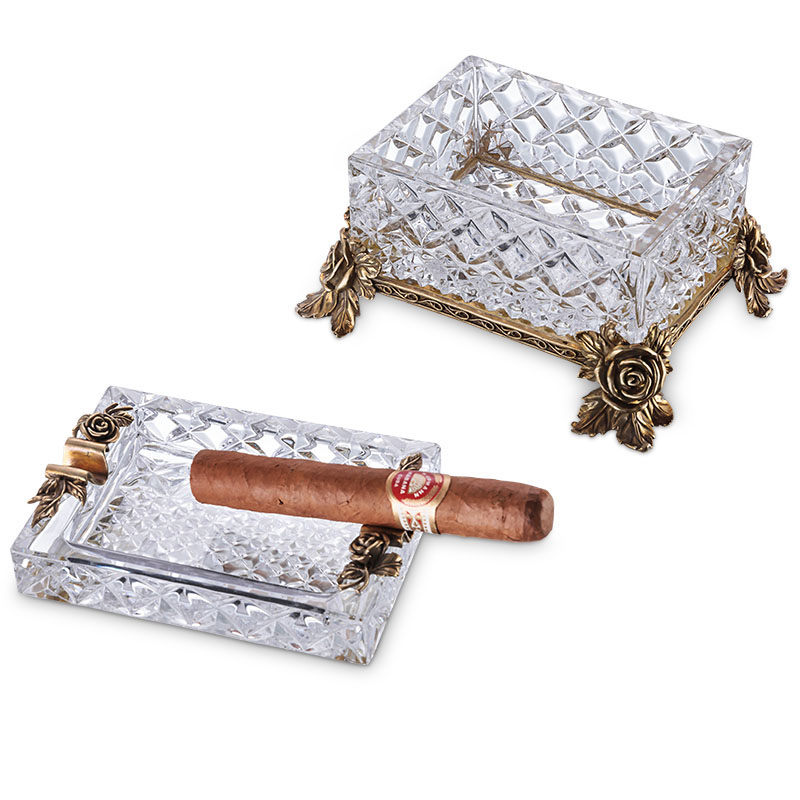 Cigar Tobacco Ashtray Rose Fine Bronze Sculpture Base Smoke Groove European-style Crystal Large Rectangular Creative Living Room Office