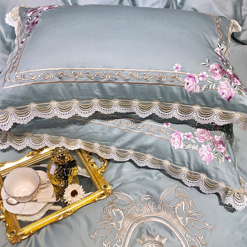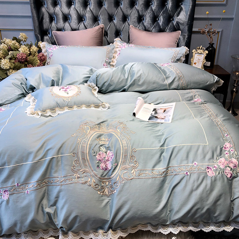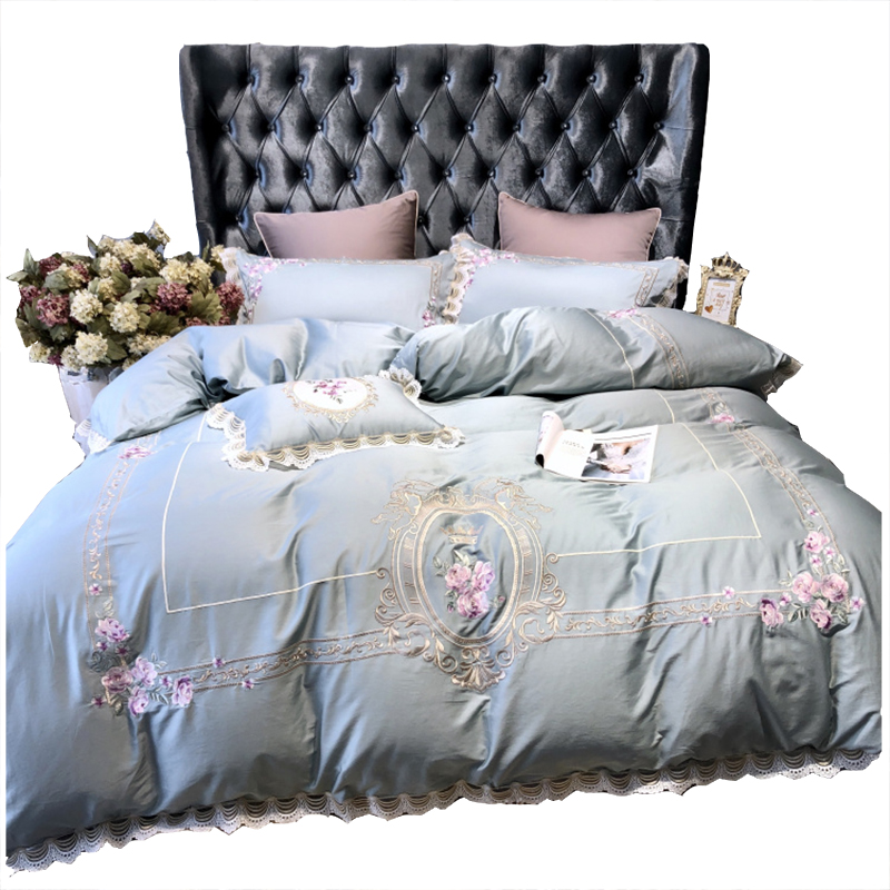 High-end European and American wind 60 whole cotton silk embroidered quilt cover with four sets of embroidery American princess lace bed with supplies