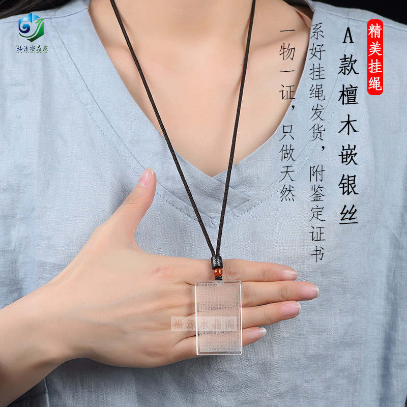 Natural white crystal Heart Sutra Shurangama mantra pendant Open evil luck amulet Safe and sound card Necklace pendant for men and women