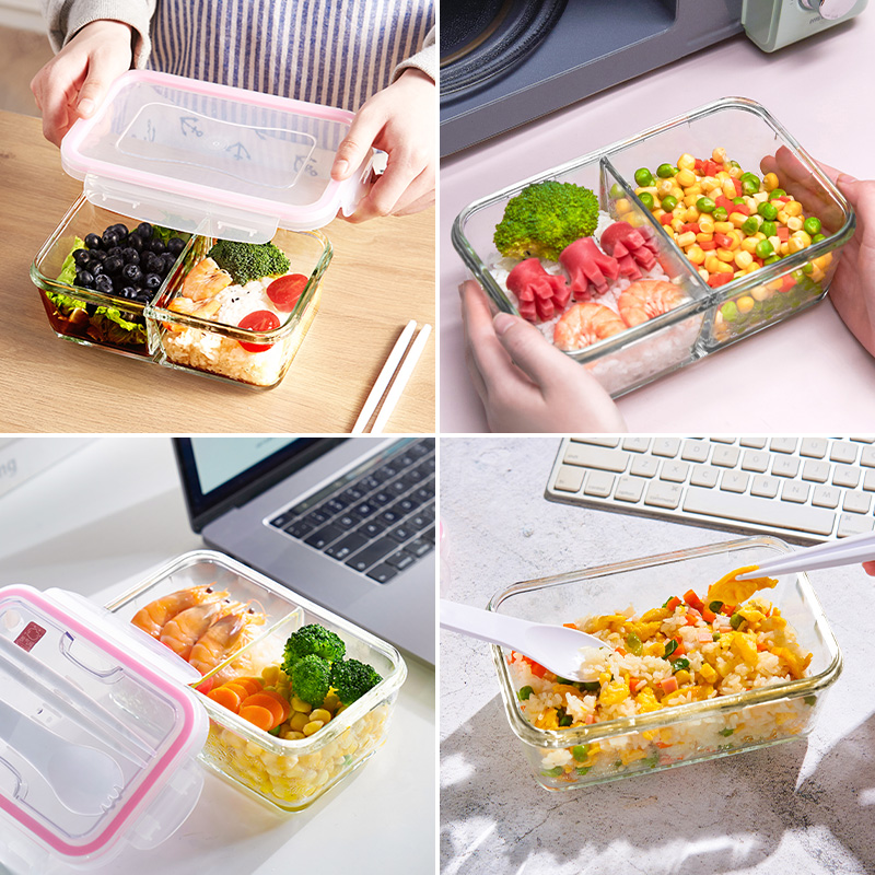 Food Preservation Box Office Lunch Office Lunch Box Rectangular Sealed Lunch Box Glass Separation Microwave Oven Heating Special Bowl