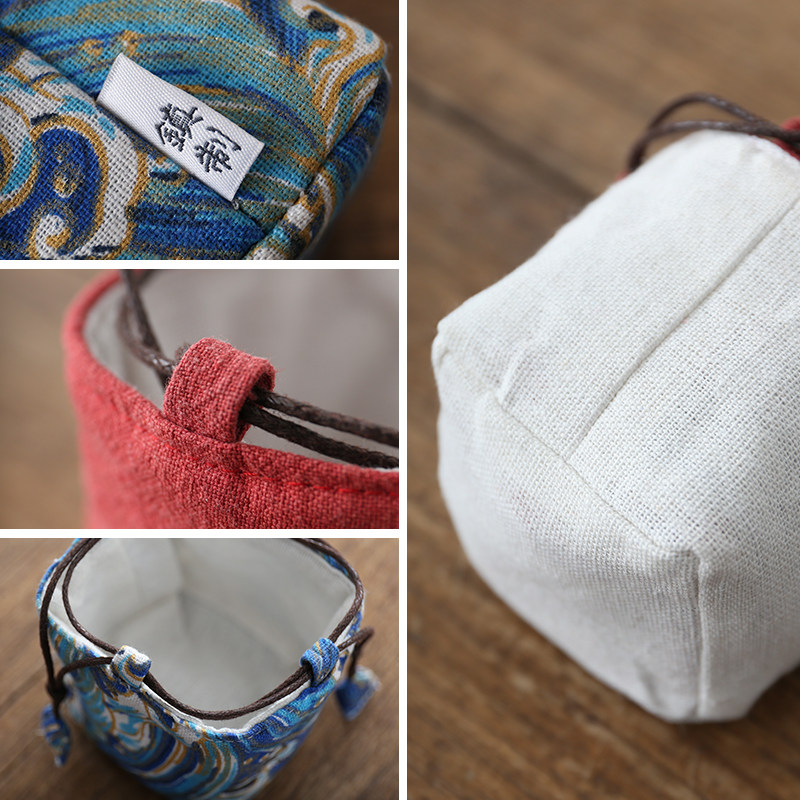 Japanese style tea ceremony old cotton bag teacup bag thickened cloth bag jewelry jade bag portable teacup cover