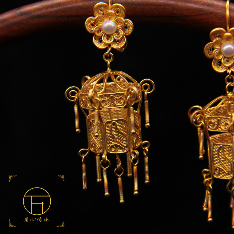 Wanbao German silver filigree inlaid ancient handmade silk court retro pavilion earrings DIY tassel water drop earrings