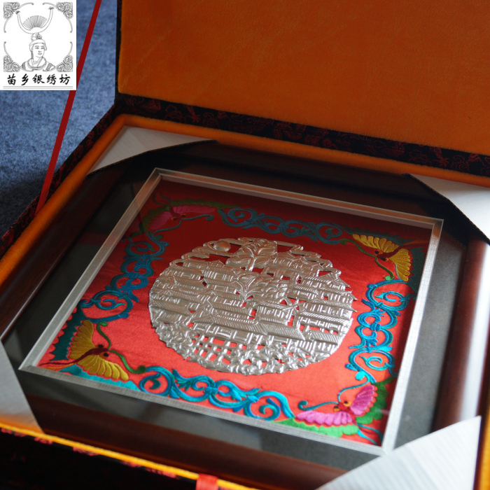 Miao Xiang Silver Embroidery Workshop to be made of handmade silver decoration machine embroidered boutique home 32X32 Miao village Zisunrise Featured silver painting