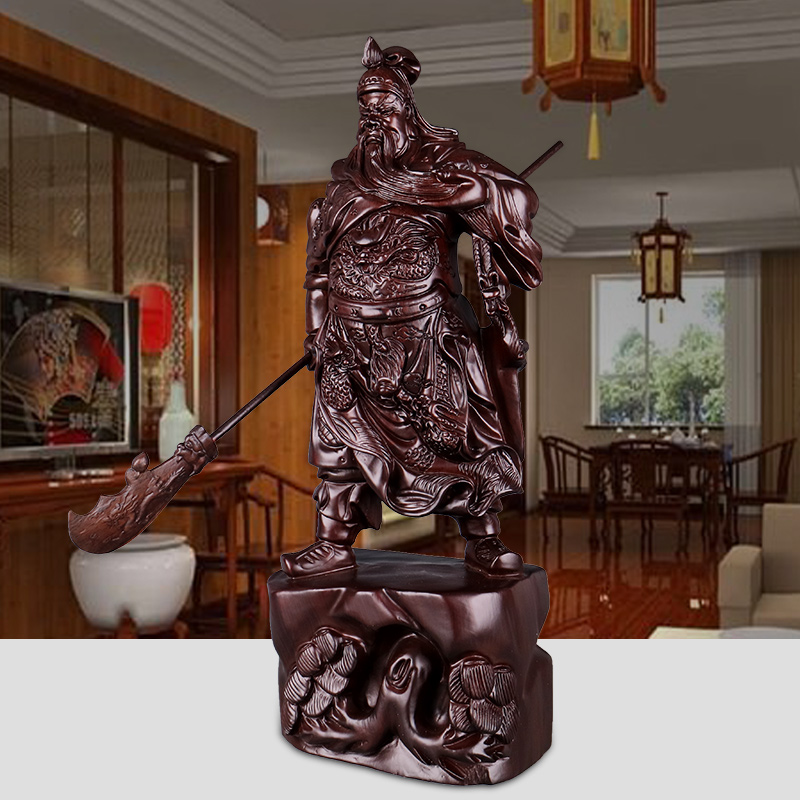 Wood carving Guan Gong statue decoration living room large horizontal knife Guan Yu ebony solid wood carving Martial God of wealth Buddha statue craft gift decoration