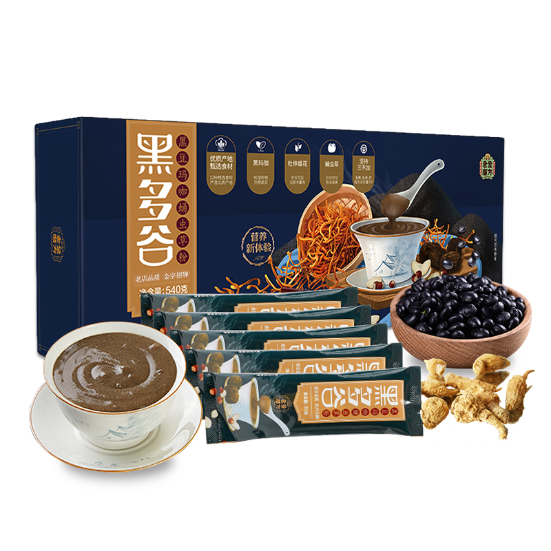 (Half price) Lao Jin Mo Fang Hei Duo Gu Black Bean Black Maca Cordyceps Militaris Powder Eucommia Male Flower Black Sesame Powder Meal Replacement