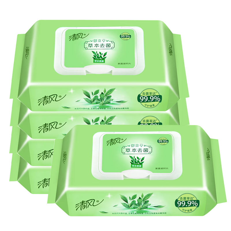Qingfeng wet paper towel Royal Herbal sterilization and disinfection hygienic portable with cover removable soft wet paper towel 80 pieces 5 packaging