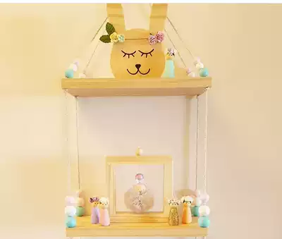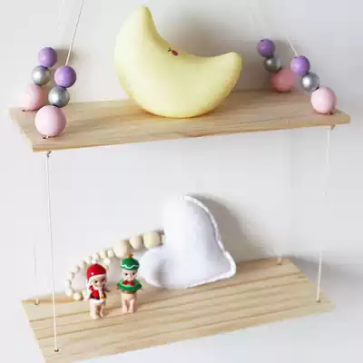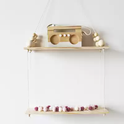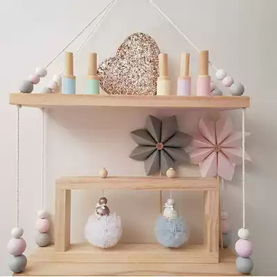 ins home solid wood beads double-layer partition wall shelf wooden pallet children's room decoration children's clothing store props