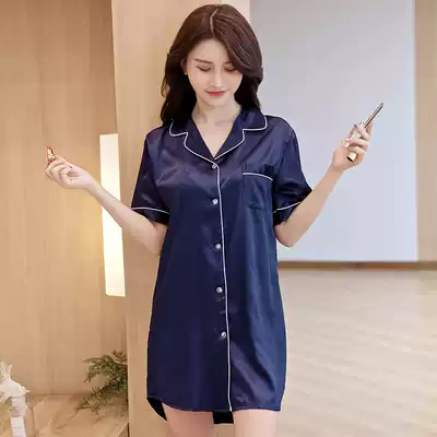Sexy Nightdress Women Summer Ice Silk Student Long Short Sleeve Silk Shirt Summer Thin Pajamas Spring and Autumn Large Size