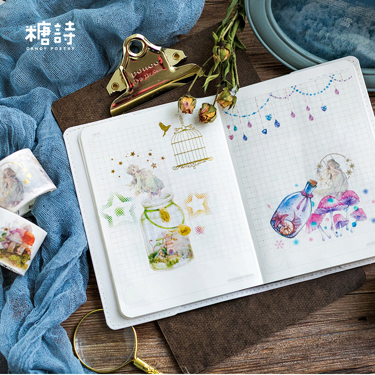 Sugar poetry and paper adhesive bottles in the world cute teenage girl glass bottle mushrooms DIY decorative handbill adhesive tape