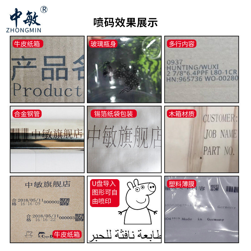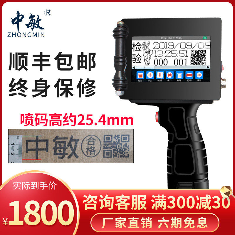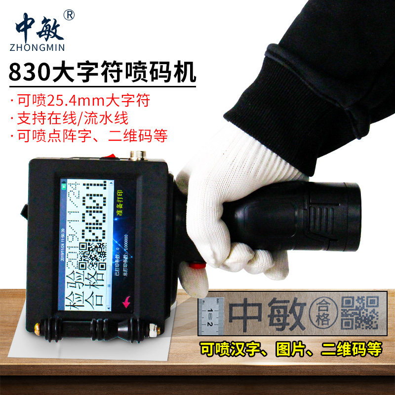 Zhongmin ZM-830 Large font 25mm Smart handheld large character inkjet printer Small automatic food production date inkjet printer Large nozzle Label coding machine Inkjet carton board