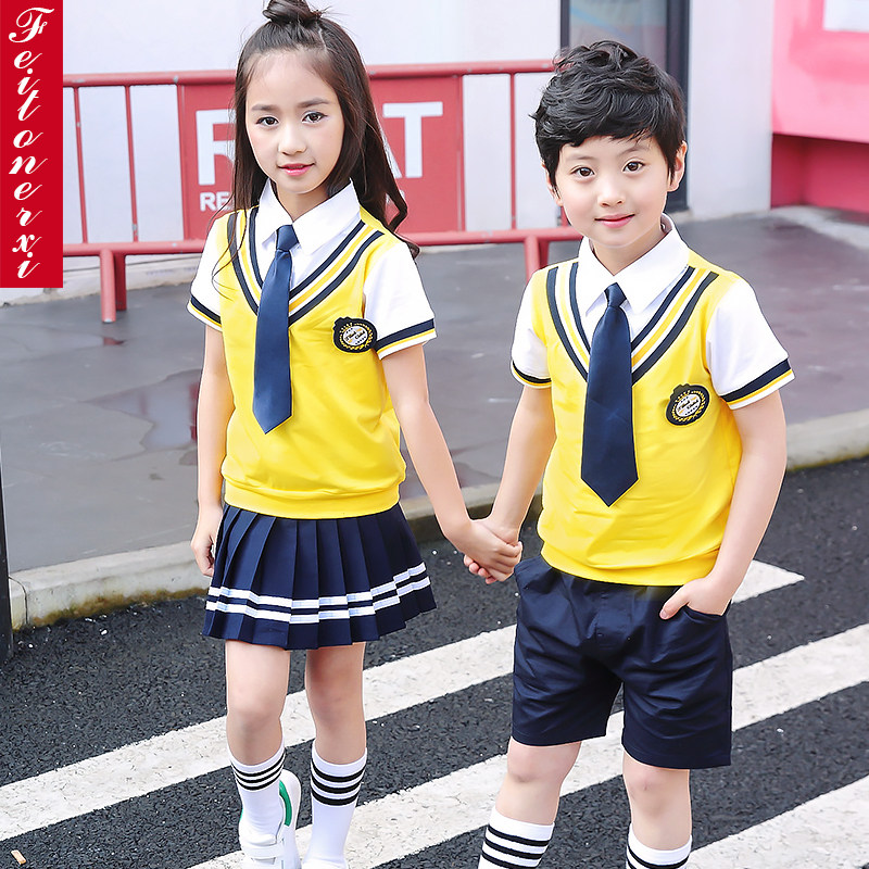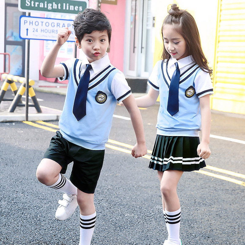 Kindergarten garden clothes Summer clothes British style primary school uniform Summer short sleeve suit Cotton graduation suit Children's class clothes