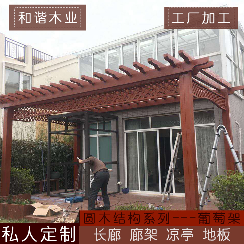 Anticorrosive wood grape frame courtyard carbonized wood outdoor pavilion outdoor gallery creeping rattan frame flower frame promenade simple garden