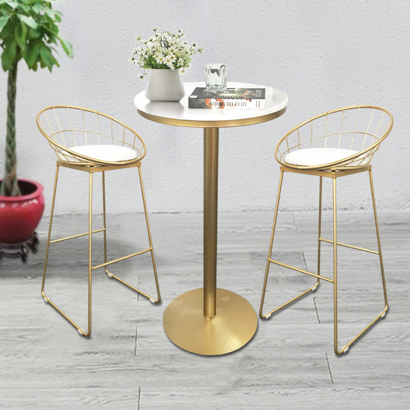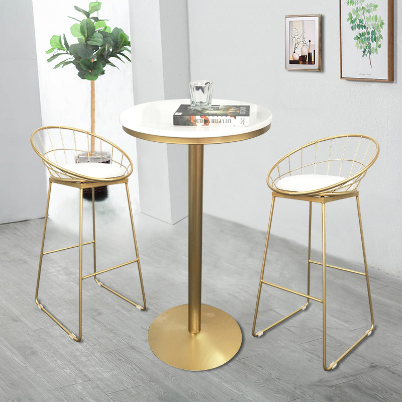 Nordic creative round high-legged table Bar table Solid wood household Wrought iron bar chair High round table Milk tea shop table and chair