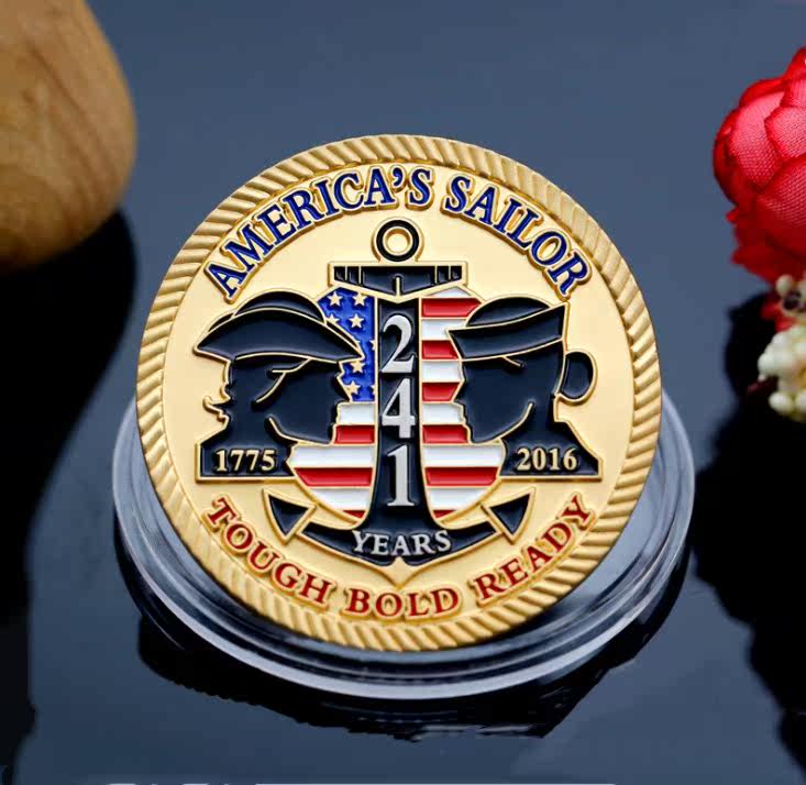 Painted Metal Commemorative Coin Making Color Printing Screen Printing Gold Plated Commemorative Coin Acrylic Packaging Gold and Silver Coin Manufacturer