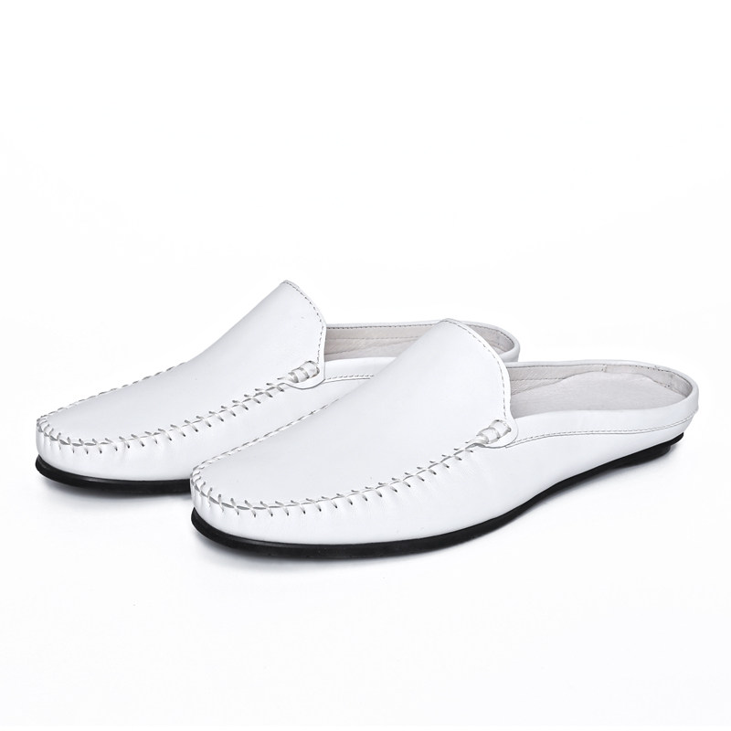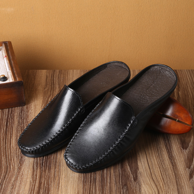 Summer Men's Casual Leather Slippers British Trend Baotou Half Slippers Men's Slip-On Peas Slippers Loafers - Taobao