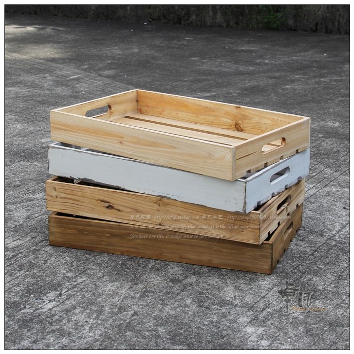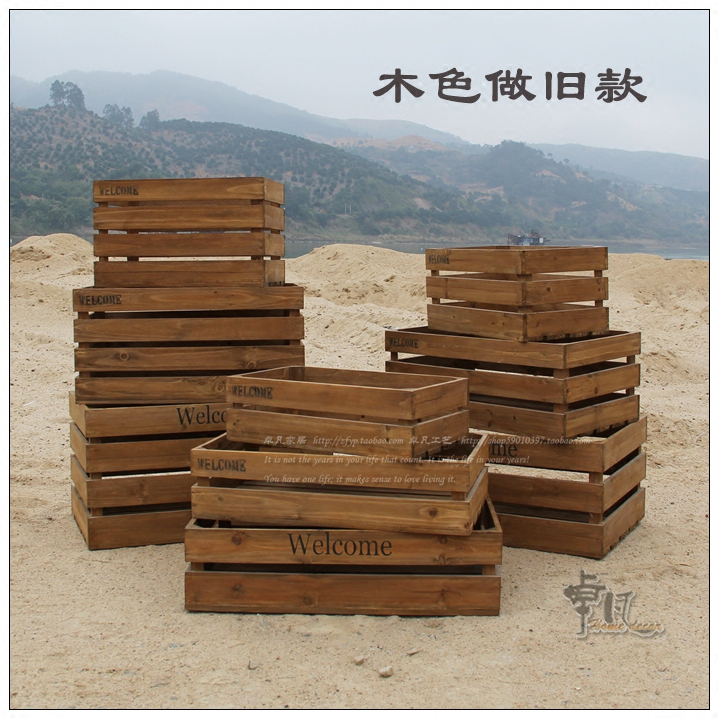 Retro wood Case rectangular large solid wood storage containing box set to make small wooden case display decoration old wood frame box