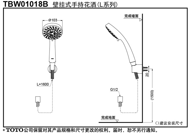 TOTO bathroom shower head wall-mounted simple simple shower head five-function handheld shower TBW01018B