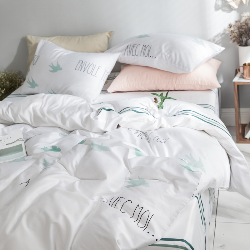 60 gung satin long suede cotton small frescoed green crushed flowers four pieces of pure cotton bed linen bed linen covered with three sets