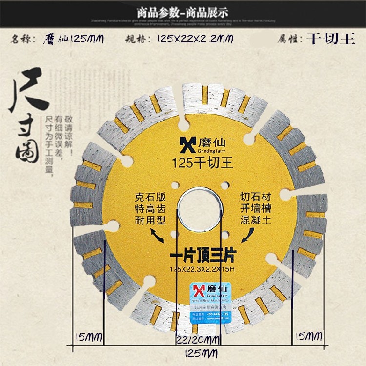 Moxian 121 125 dry cutting king cutting piece stone red brick cement concrete slotting machine marble saw blade