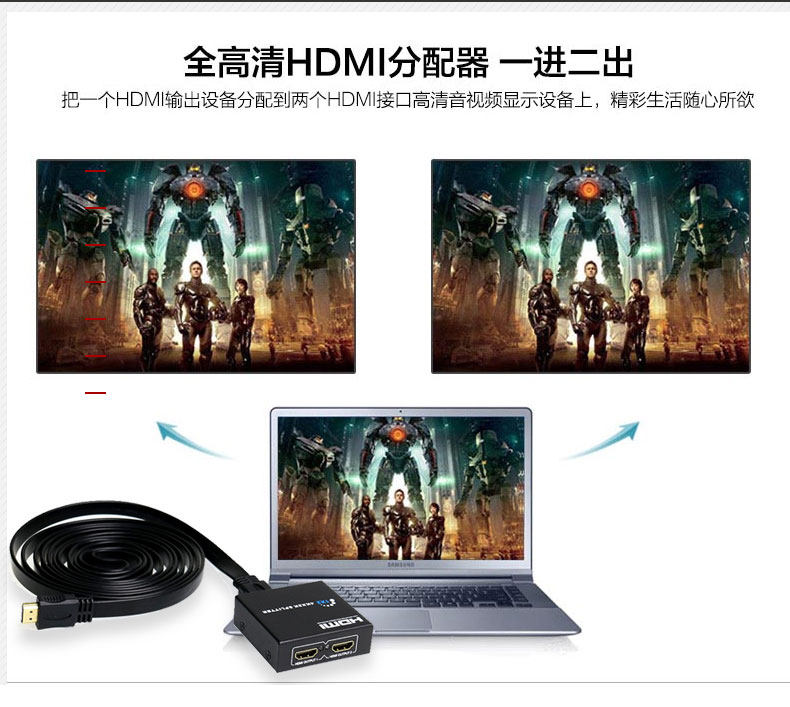 Notebook computer high-definition HDMI one-to-two splitter one-in-two-out extension cable to connect two monitors
