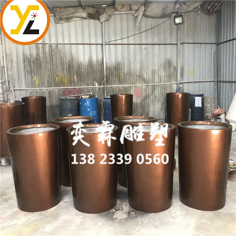 Cylindrical glass fiber golden flower pot hotel lobby living-room flower-flower flower-flower flower-glass fiberglass floor large flower pot