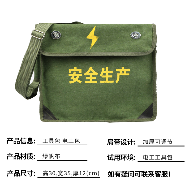 Electrician kit thickened abrasion-proof green sail cloth bag single shoulder sturdy double five gold tool cashier bag repair lapao-Taobao