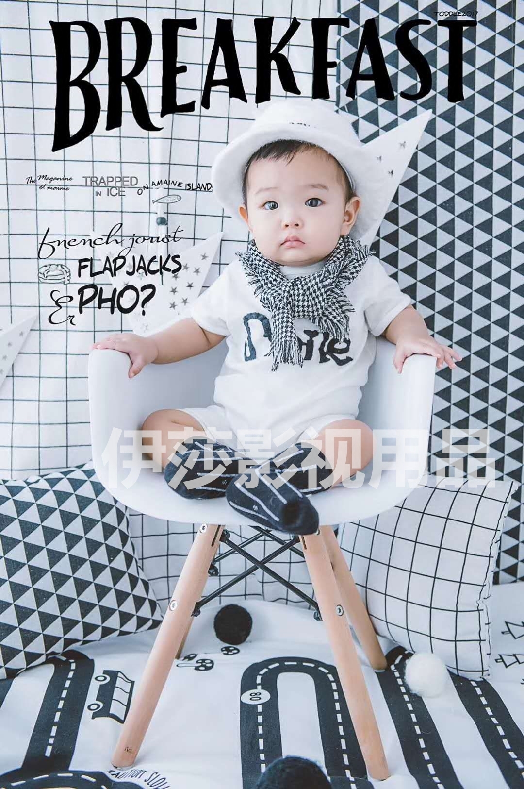 The complete set of theme black and white square cloth (1 5*2M) black and white triangle (1 5*2M) carpet (70*180CM) children's white stool square pillow (30*30C)