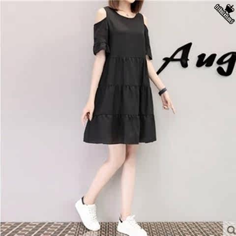 Korean maternity dress Western dress Summer dress Medium and long version Short sleeve strapless loose large size top a-line skirt tide mom shows thin