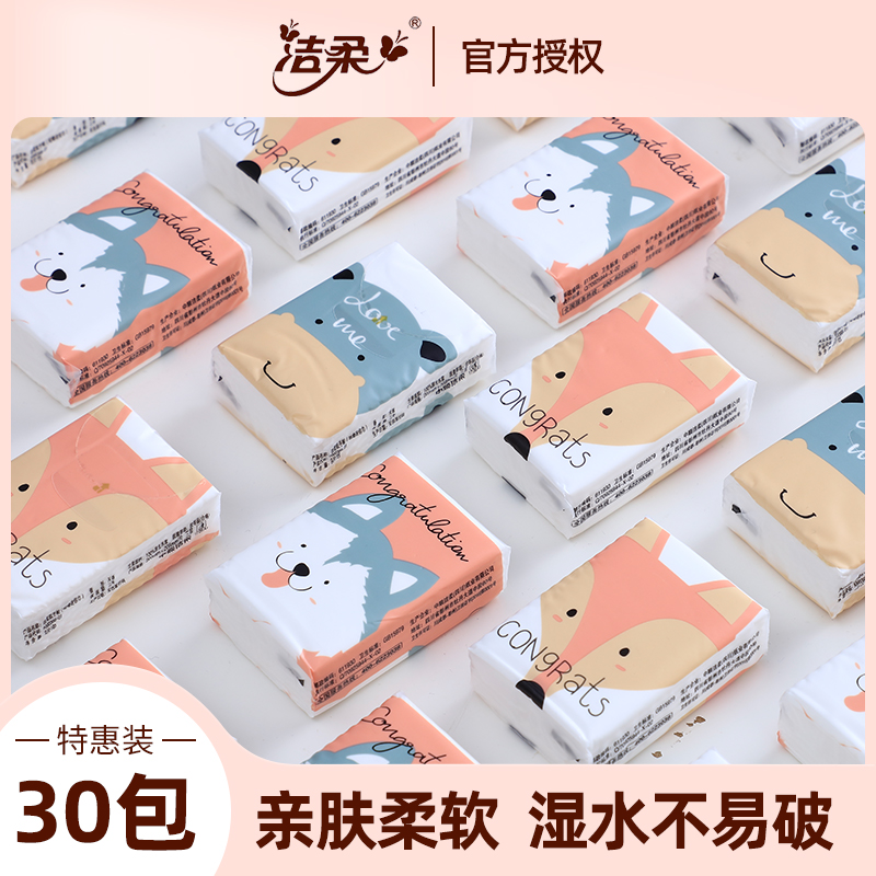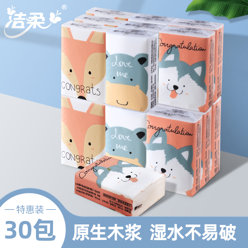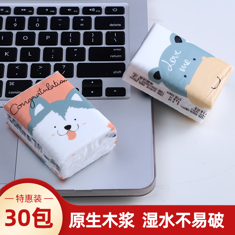 Clean and soft paper hand pastel bag Extraction Toilet Paper Whole Box Napkin Portable travel with cute face towels Paper 30 Package