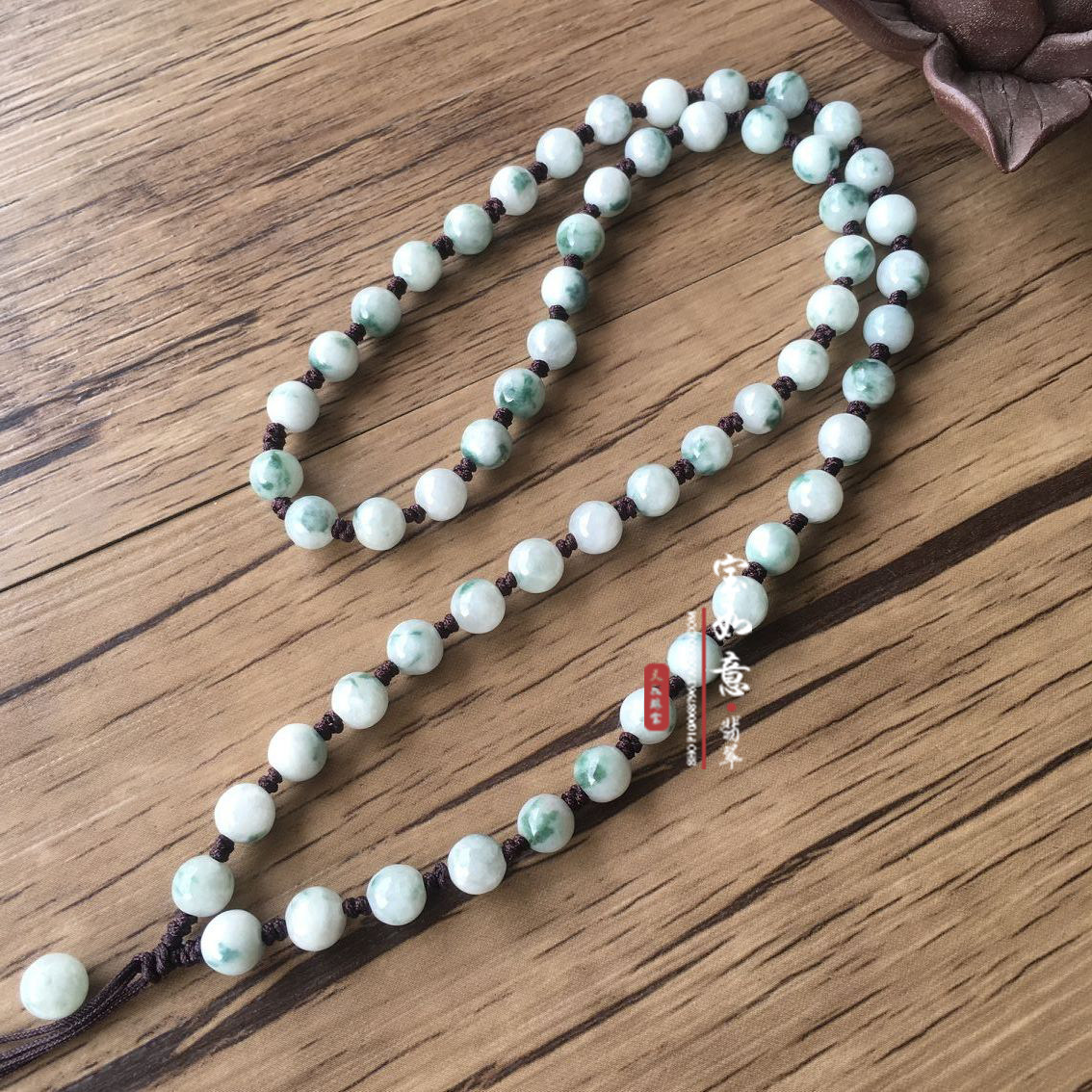 Natural emerald jade pendant rope High-grade hand-woven floating flower rice bead necklace rope jade pendant lanyard for men and women