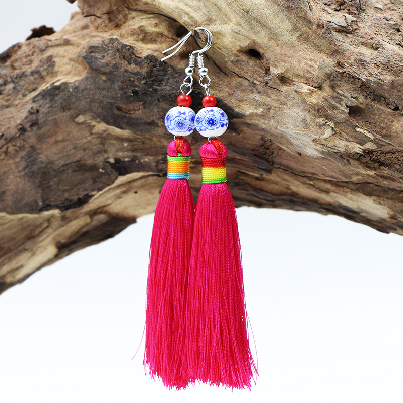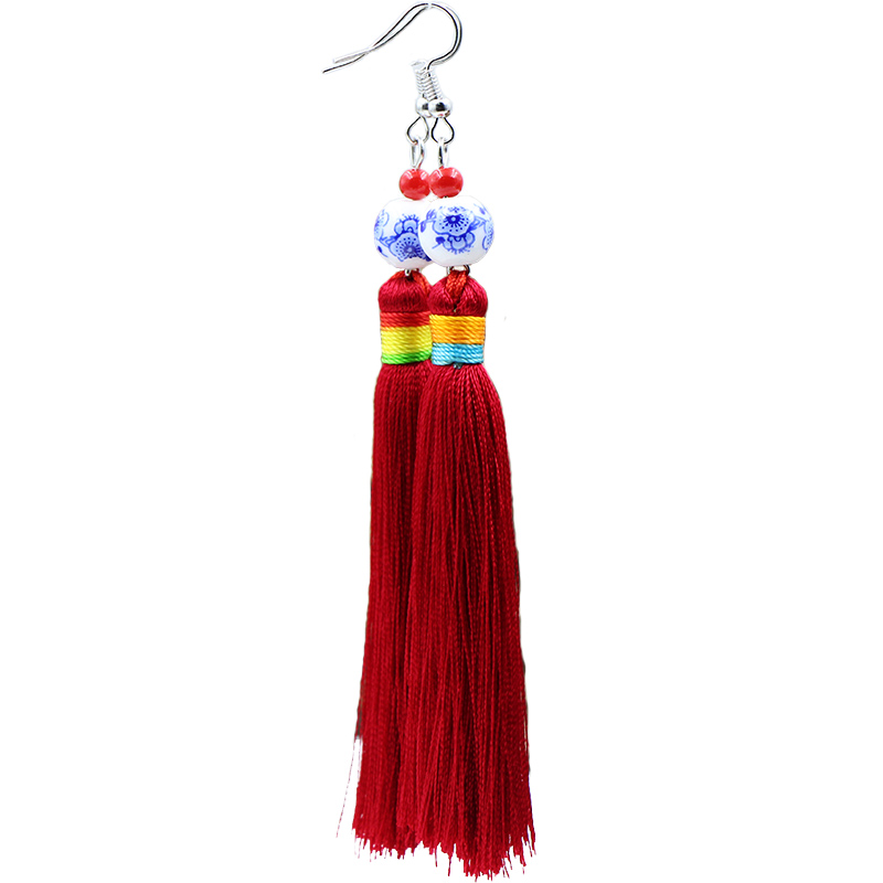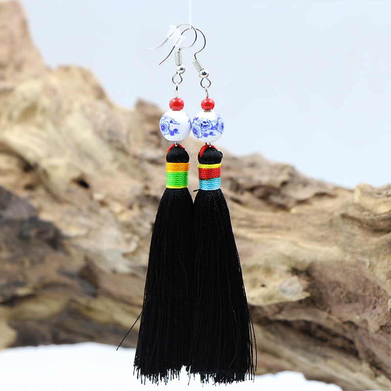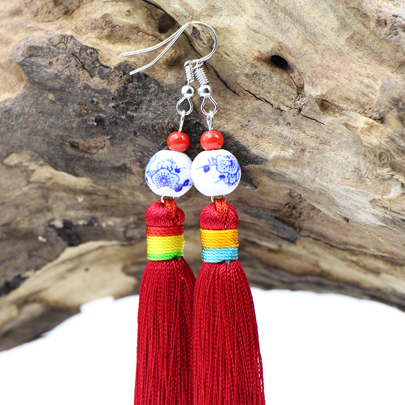 Yunnan National Wind Features Su Earring Handmade Ear Ear Fall New Year Accessories Blue Flower Ceramic Bearl Ear Fall