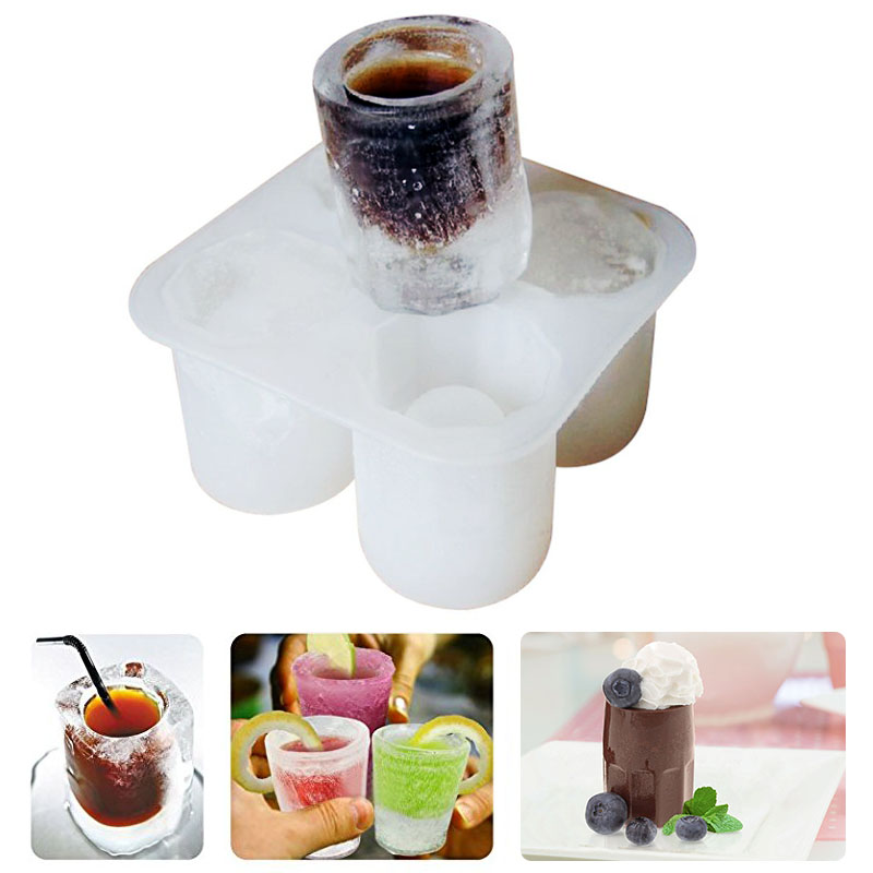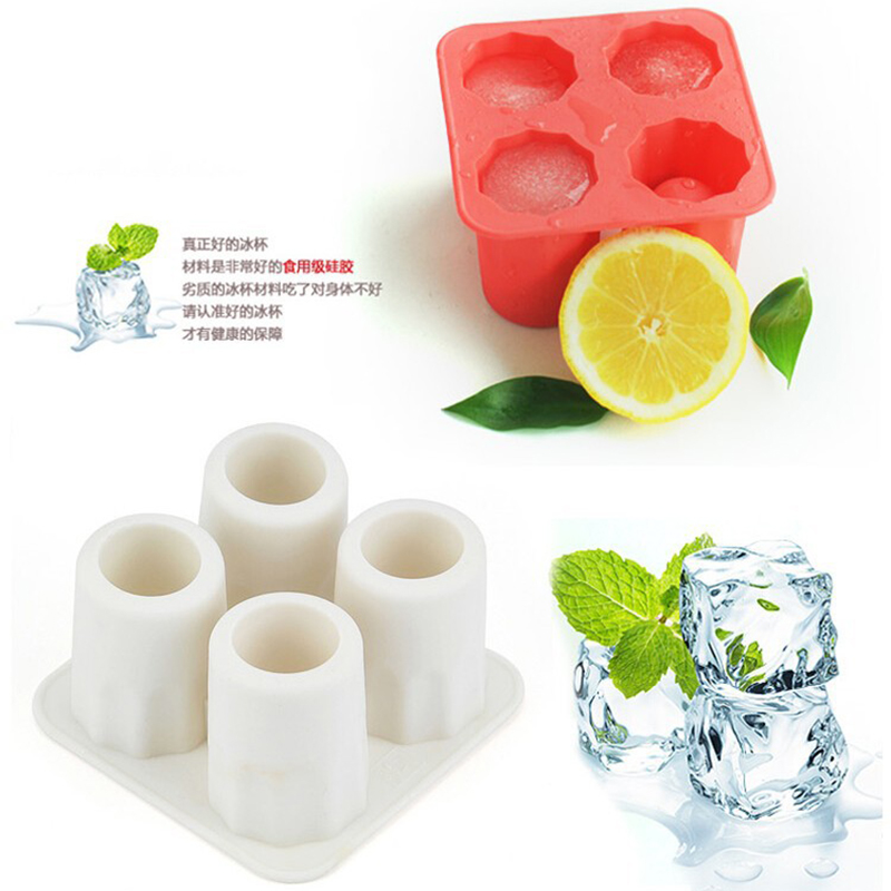 Four-grid ice cup 4-hole ice cup ice tray DIY silicone ice mold refrigerator frozen large ice cube bar wine ice maker