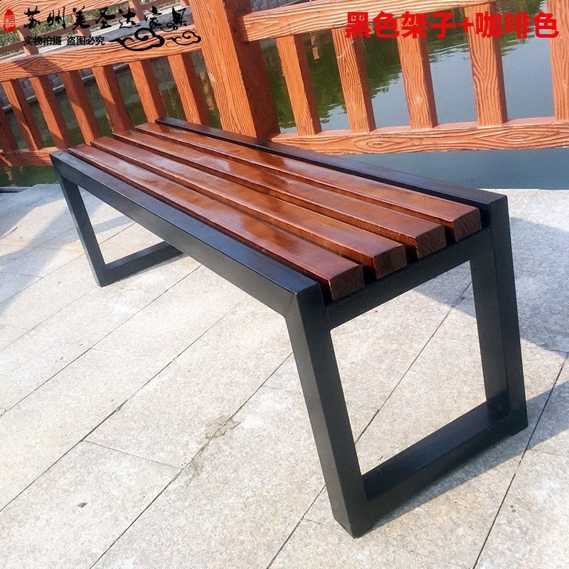 Outdoor Embalming Wood Park Platoon Chair Rest Dressing Change Shoes Iron Art Strip Stools Mall Casual Solid Wood Chairs