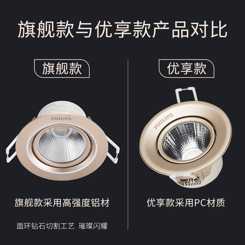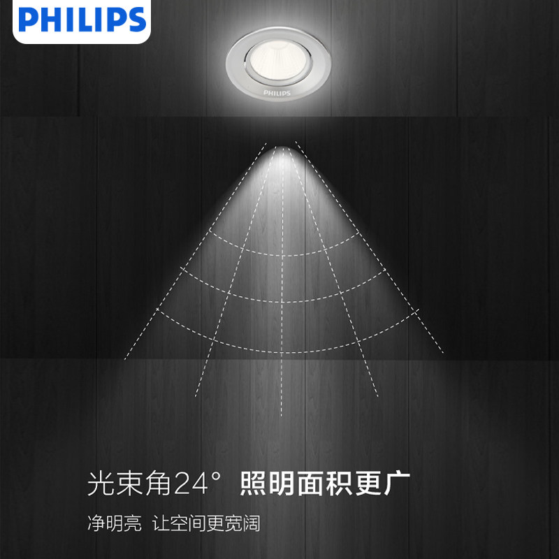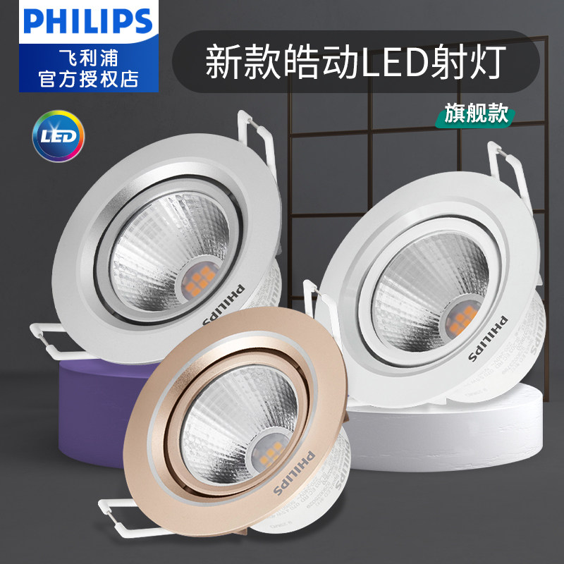 Philips spotlight LED ceiling lamp 3w drilling embedded bull's eye hole lamp adjustable angle background Hao dynamic spotlight