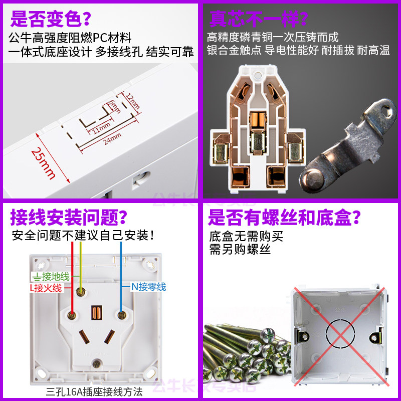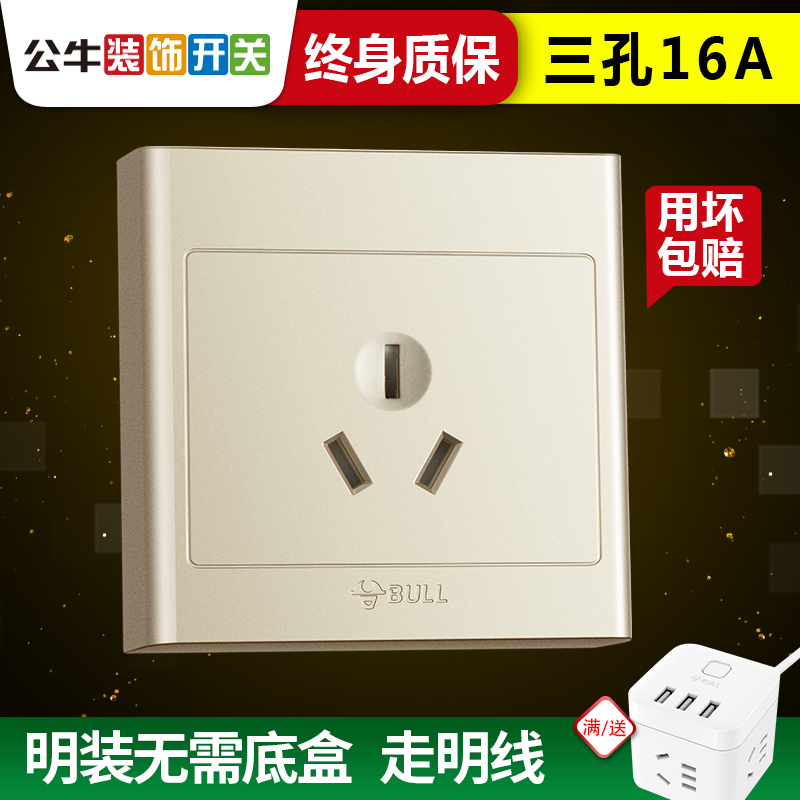 Bull Dress 16A Three-hole Air Conditioning Socket Switch Socket Triple Hole Water Heater 86 High power Ming fit socket 3 holes