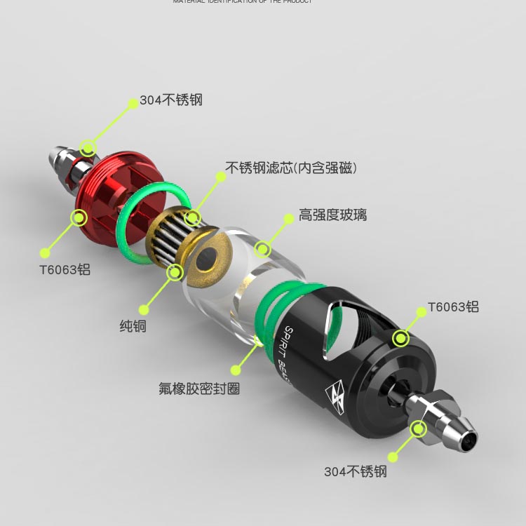 Aluminum gasoline filter for Gadek paramotor