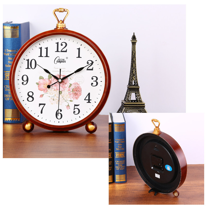 Kangba Silk table clock Living room large wall clock European retro table clock Modern creative ornaments Silent clock table