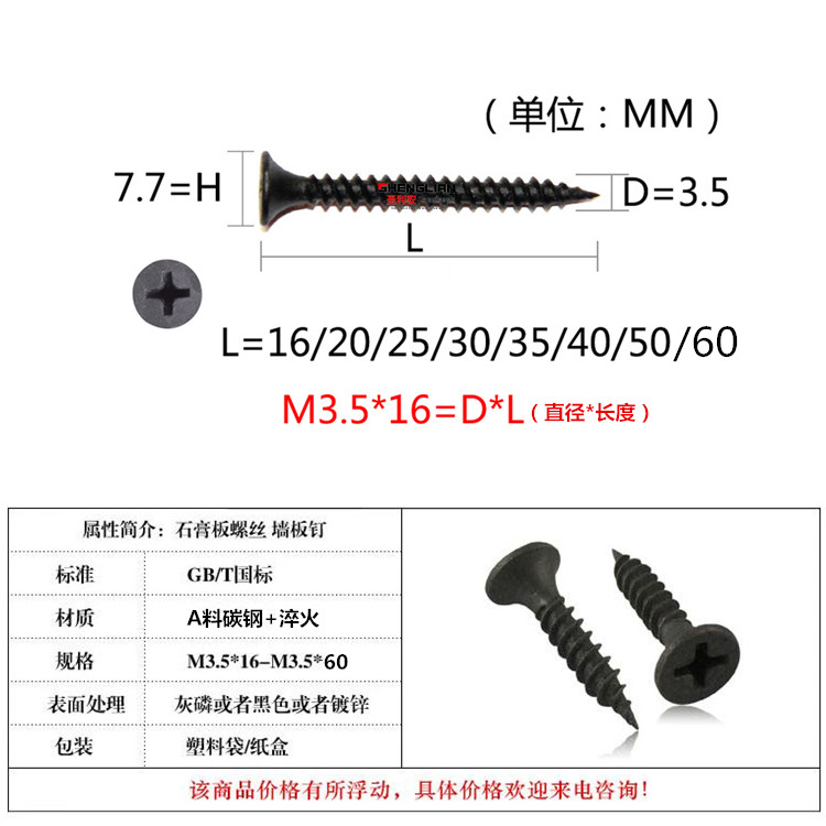 Plasterboard cross countersunk head self-tapping screw lengthened screw plus hard fibreboard quick wire dry wall nail whole box fit M3 5
