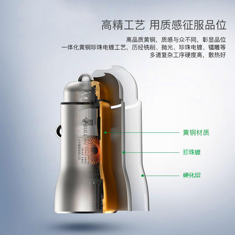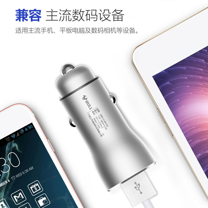 Bull On-board Apple Charger Car Cigarette Lighter Head New Double Outlet USB Smart Plug A Tux Quick Charge