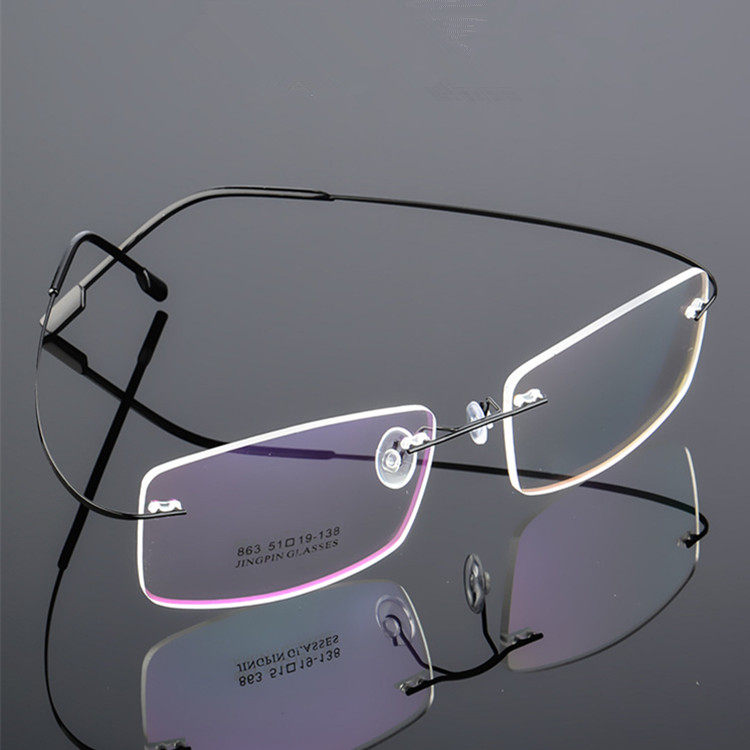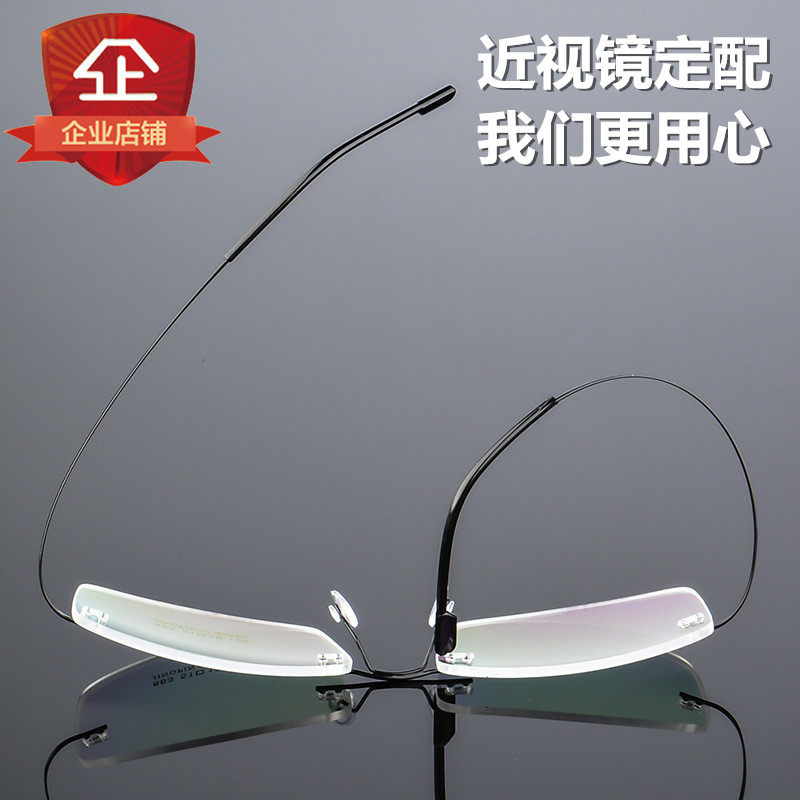 Pure titanium retro no-frame myopia glasses titanium alloy mirror frame accessories anti-blue light flat light No side frames extra-large face type male