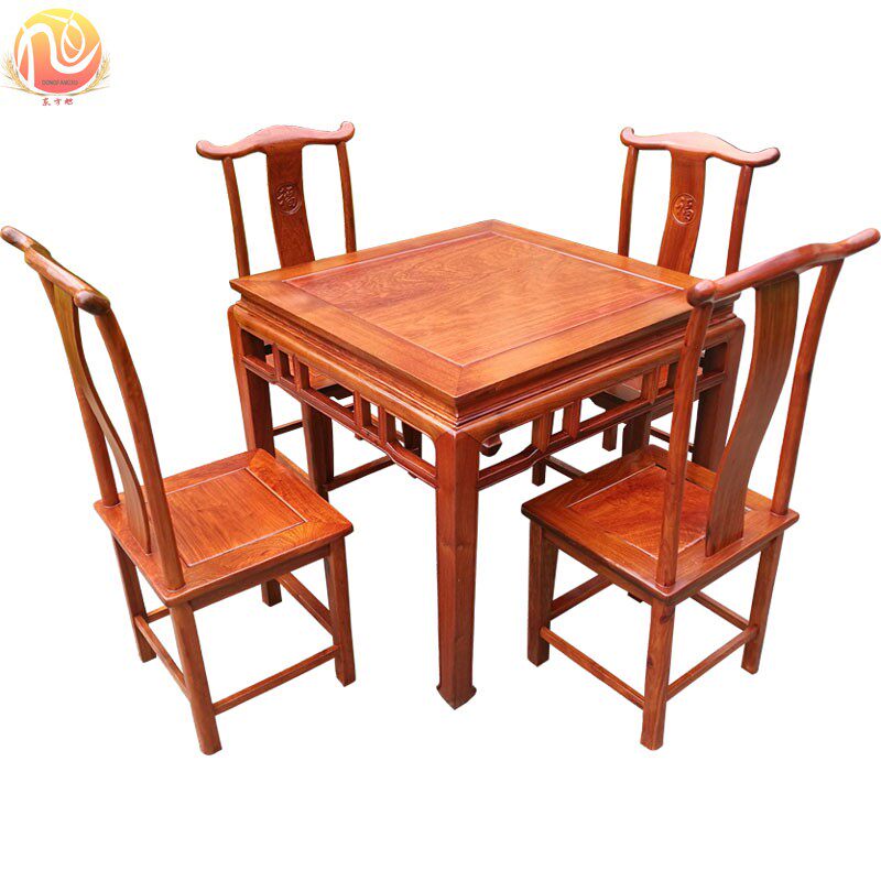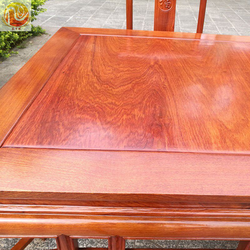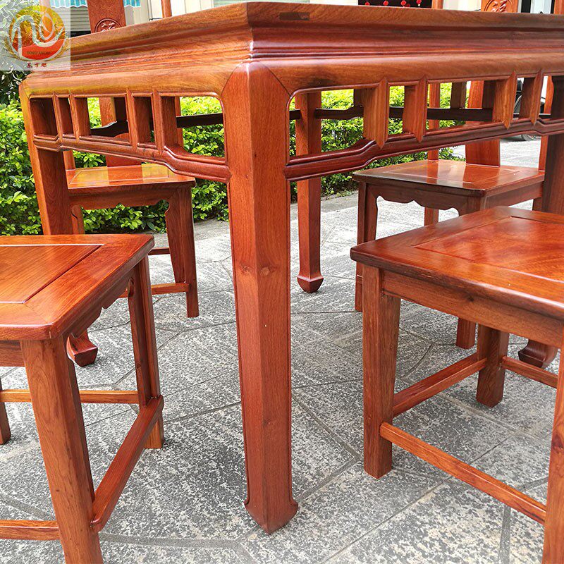 Single-board mahogany Burmese rosewood square table large fruit red sandalwood square dining table and chair rosewood official hat stool dining table and chair