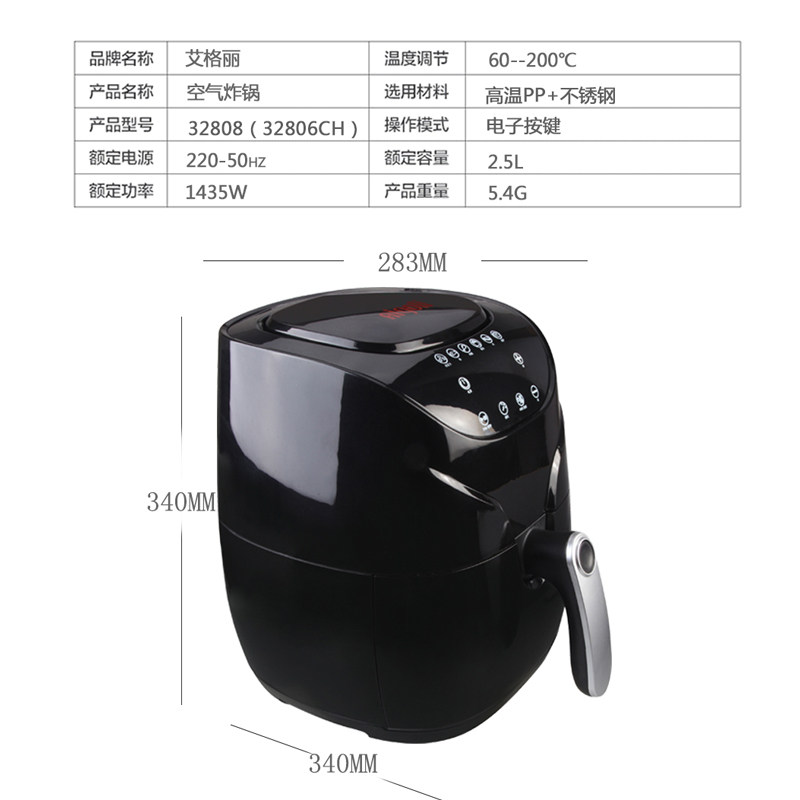Aigli export European air fryer home smart digital touch screen oil-free smokeless electric fryer multi-function