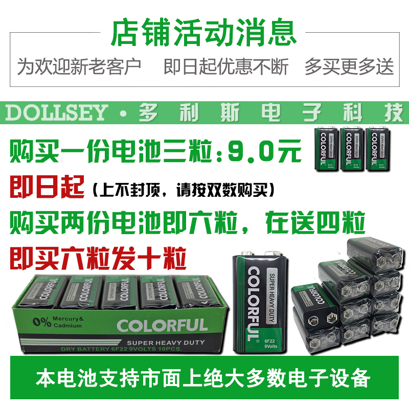 Remote control battery 9V carbon utility meter battery microphone square battery universal 6F22 laminated battery large capacity