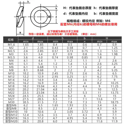304 316 201 Stainless Steel Spring Gasket M1 6m4M5M6m8m10M12M-M30 Thickened Washer Min