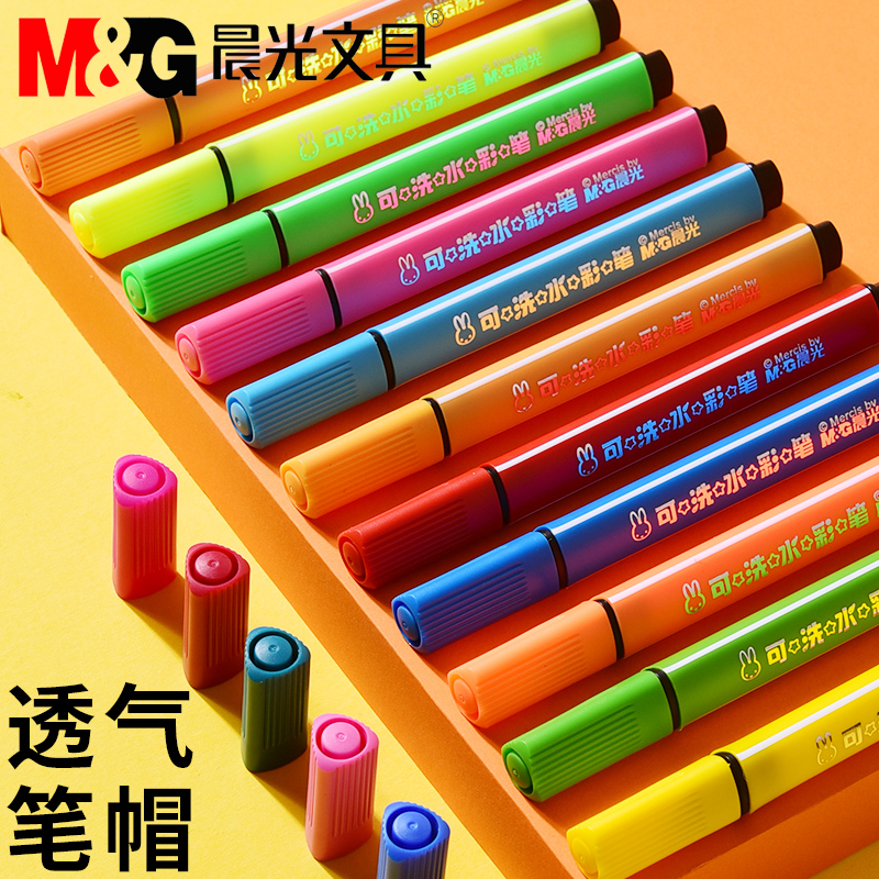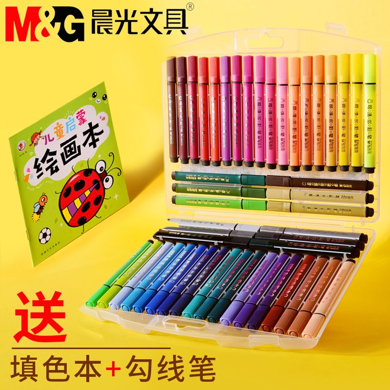 Morning light watercolor pen set for children kindergarten primary school students with 24 colors 48 colors 36 colors washable painting pen Beginners hand-painted large capacity baby seal 12 colors boxed double head