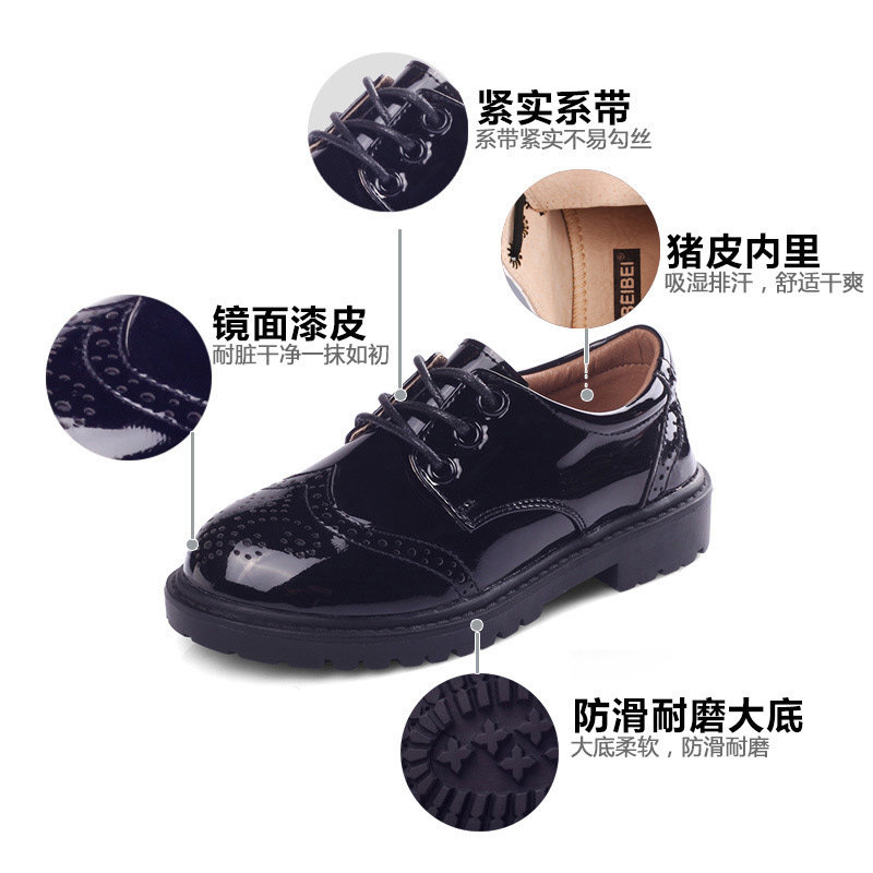 Boy leather shoes Black Inn Dress Shoes Elementary School Kids Soft Bottom Boy Boy Shoes Performance Shoes Single Shoes Student Shoes
