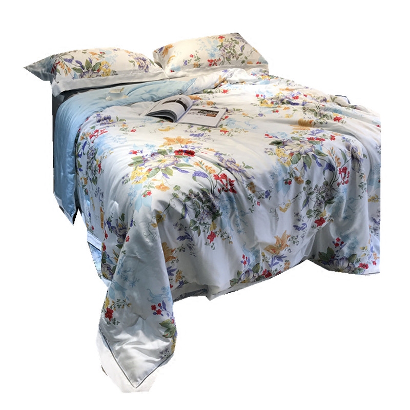 Summer 60 Tencel summer quilt four-piece washable summer air-conditioning summer cool quilt core flower double ice silk thin quilt