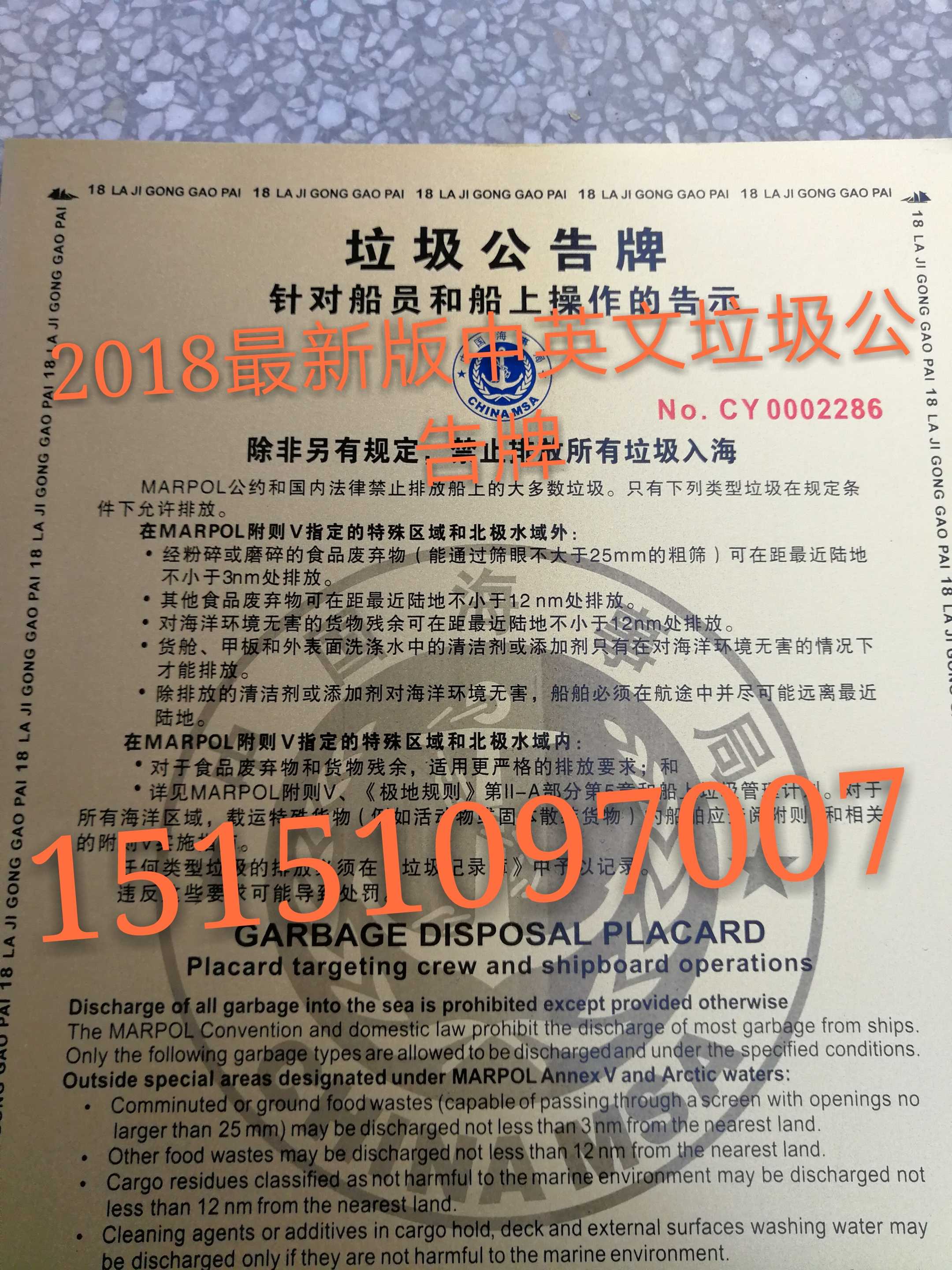 Marine bulletin board 2018 latest junk bulletin board Latest Billboard in English and Chinese garbage cards