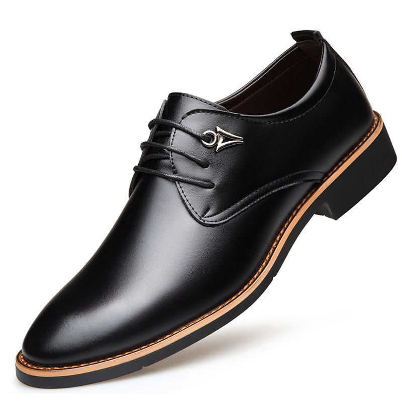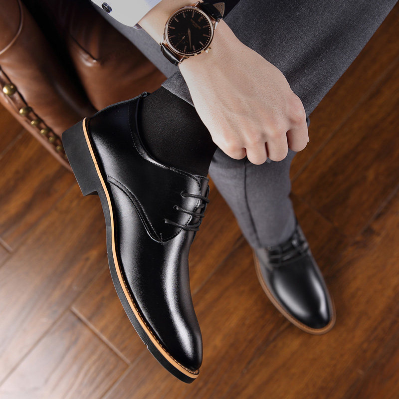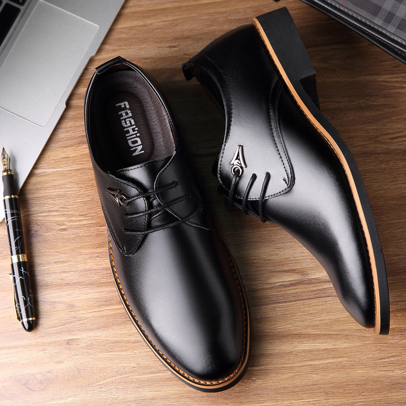 Men's leather shoes leather summer breathable British business formal dress pointed toe casual shoes lace-up black work shoes for men